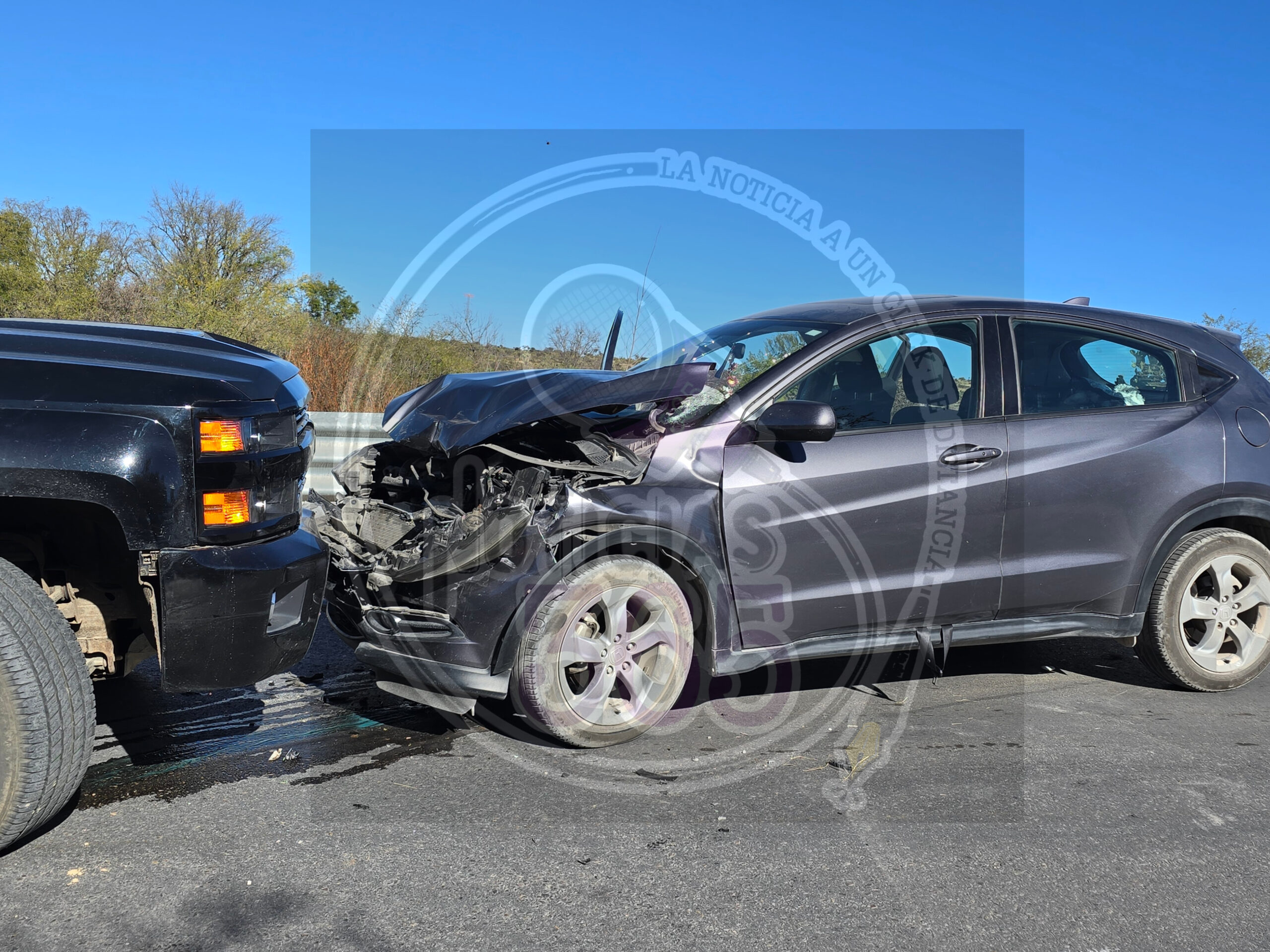 Un fuerte choque frontal registrado sobre el Libramiento Carretero Oriente, a la altura del puente El Carrizal, dejó como saldo cuantiosos daños materiales y una mujer con crisis nerviosa.