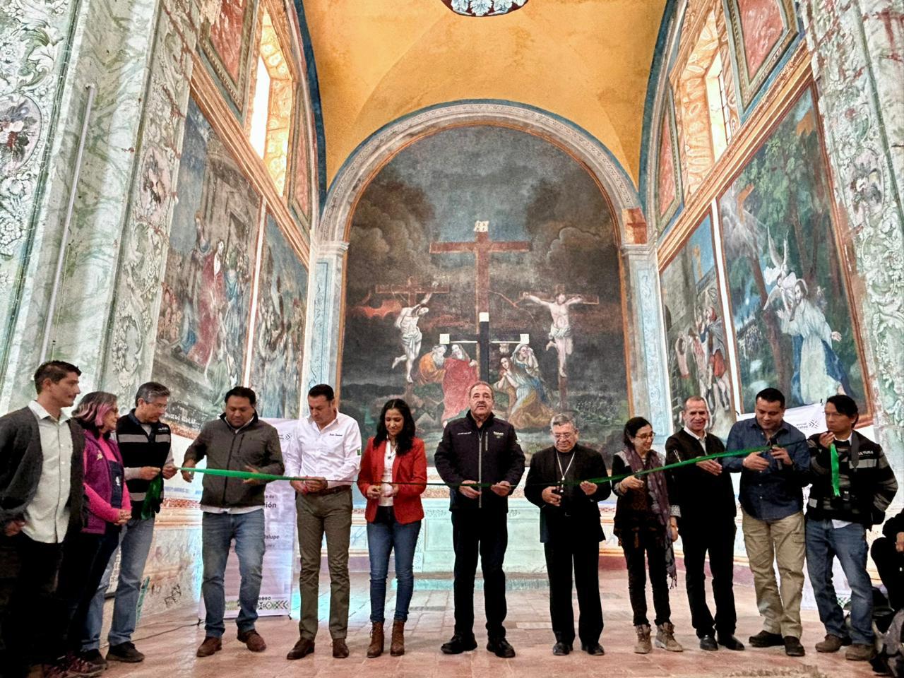 Con el respaldo del Gobernador Ricardo Gallardo Cardona para fortalecer la preservación del patrimonio histórico y cultural, la Secretaría de Cultura (Secult) realizó la entrega de la restauración de la pintura mural y del altar del Santuario de Guadalupe en Real de Catorce, una intervención que contribuye a conservar la memoria histórica, la fe y el valor cultural de este emblemático espacio.